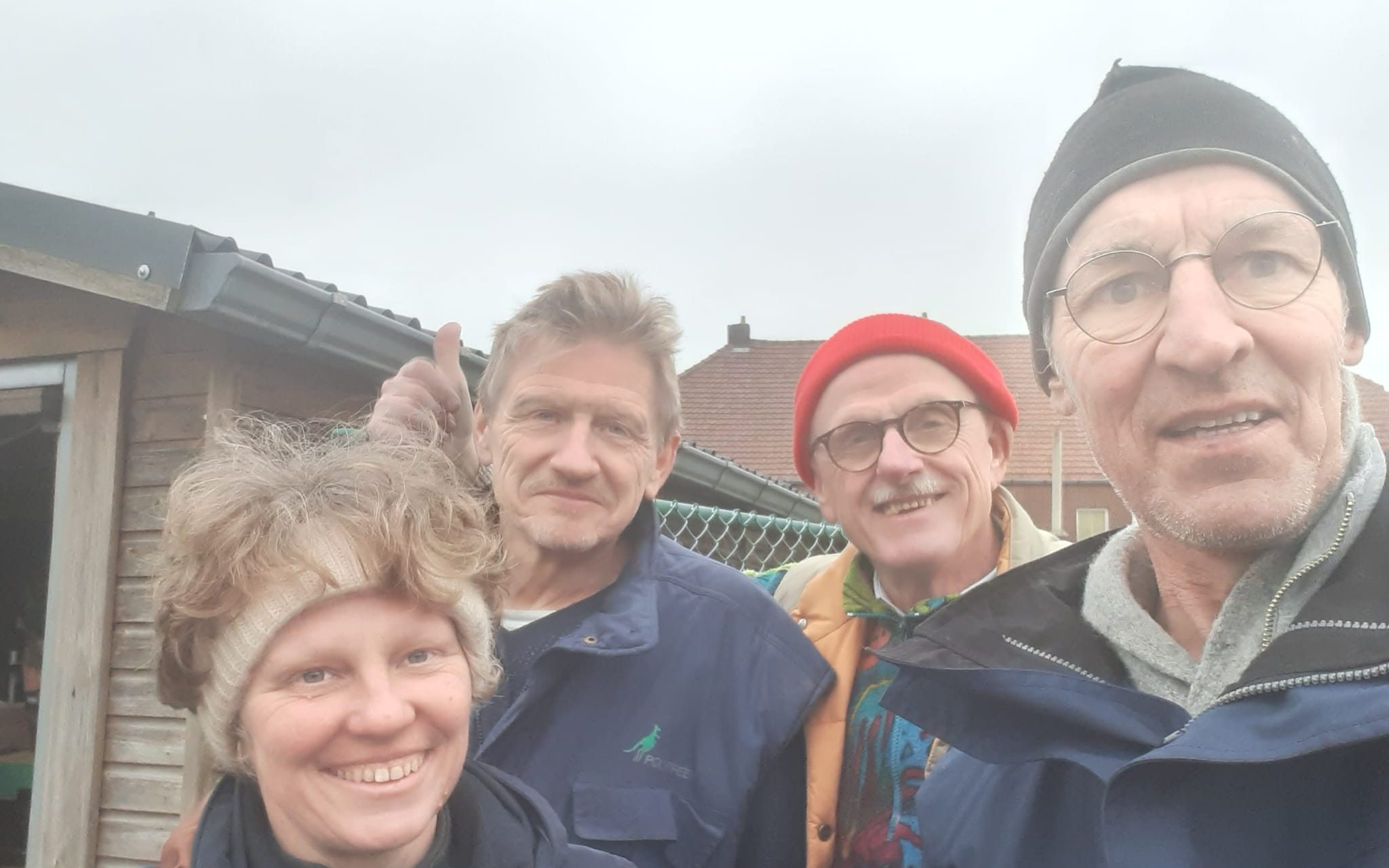 Johan – rechts op de foto – tijdens de herstellingen aan het dak van onze berging